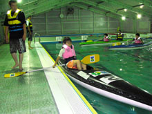 開講式を済ませたあと、引き続きミーティングルームで、乗り方や漕ぎ方などカヌーについての説明が行われました。