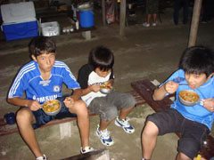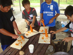燻製つくりとほぼ同時進行で夕食の準備に取り掛かりました。定番のカレーは食卓の味より野外の方が一層おいしく感じます。