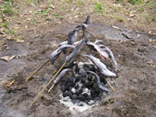 捕まえたマスは、塩焼きにしていただきました。野外活動の醍醐味ですね