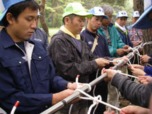 野外活動に役立つロープワークを習います