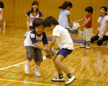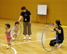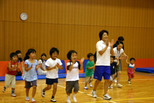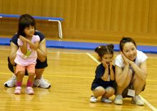 参加者は、2〜7歳の子ども10名と保護者8名。B&G財団事業部指導者養成課の大関真理子と杉本千尋が講師として、参加者たちに身体を動かすことの楽しさを伝えました。遊びながらたくさん動きまわり汗をかきましたが、常に笑顔あふれる教室でした!
