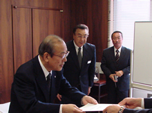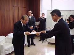 平成21年4月9日、北海道小平町役場において、平成21年度「地域海洋センター修繕助成」決定書授与式が行われました。