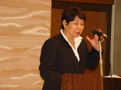 次に、「夢で終わらせない自分のがんばり」と題し、北京オリンピック200mバタフライ銅メダリストの松田丈志選手専任コーチ 久世由美子さんの記念講演があり、『4歳から20年間付きっ切りで指導、負けないためにまずは、人間的教育として「あいさつの励行・礼儀・感謝の気持ちを忘れない」ことを教えた』など、数々のエピソードを聞くことができ、温水プール担当者からの質問にも丁寧に回答されていました。