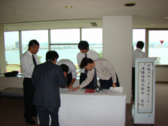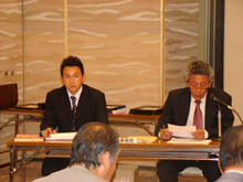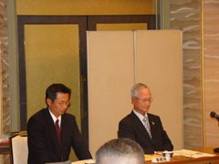 平成20年度事業報告・収支決算、監査報告、役員改選の3議案は、平成20年度会長の岩国市の福田市長が議長を務め、続く、平成21年度事業計画案・収支予算案等の3議案は、平成21年度会長の島根県西ノ島町扇谷町長へ議長をバトンタッチし、すべての議案が承認されました。