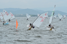 参加者は夏休みですが、会場の愛知県は梅雨明け前。残念ながら、天気は梅雨特有の曇天です。幸い雨天にはなりませんでしたが、風は、風速2m/s前後の微風。しかも風向が安定しないため、なかなかレースが開始できません。しかし、自然のコンディションは、どの選手にとっても同じこと。大切なのは、どんな状況下でも最善を尽くせる技術と精神力です。