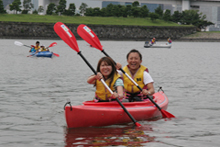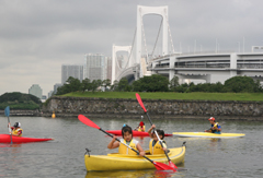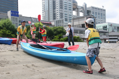 午後からのカヌー体験は、一般の皆さんが対象。お台場に訪れた多くの親子連れが参加しました。子どもはもちろん親も楽しむ姿が見られ、「カヌーは自然豊かな場所でするものだと思っていたが、都会のど真ん中でするのが新鮮で楽しかった」と感想を話していました。