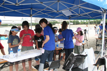 海なでしこ※の協力によるサンゴのネックレスづくりや、葛西臨海水族園の協力による「タッチプール」で東京湾に住むネコザメやアカエイにふれるなど、普段とは違う自然いっぱいのお台場をたっぷり楽しみました。