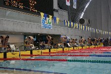 早速レース開始。東京辰巳国際水泳場は、国際大会も開催される日本を代表する水泳場の1つです。選手たちにとっても普段練習しているプールとは、その規模も迫力も違います。