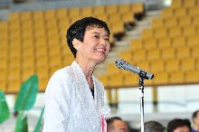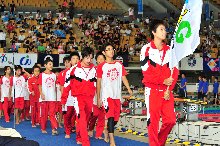 開会式では大会委員長で、B&G財団専務理事の広渡英治の挨拶のほか、ご来賓の方からも激励のお言葉を頂戴しました。その後、昨年度優勝の滋賀県チームより優勝カップの返還と、岡山県の選手による選手宣誓が行われました。