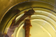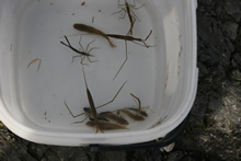 水生昆虫をはじめ、小さな魚など様々な生物を見つけました
