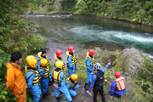 研修会には、北海道内の地域海洋センターで活躍する指導者10名が参加。北海道国体でカヌーのスラロームやワイルドウォーター会場にもなった空知川で実技などを行いました。ちなみに空知川流域の南富良野町は現在もカヌー競技が開催されており、ラフティング等も盛んに行われています。