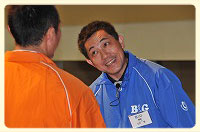 | 今回の体験クルーズの大島団長(B&G財団常務理事)が、B&G財団の設立目的や、海洋教育事業や指導者養成事業など、財団が行っている事業の説明をしました。その後、みんなが楽しみにしている小笠原での活動内容の説明も行なわれました。 | |