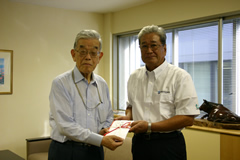 皆様からお預かりいたしました募金は、9月7日(火)にB&G財団の梶田会長から笹川記念保健協力財団の紀伊國 献三理事長にお渡しさせていただきました。