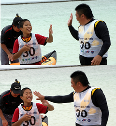 競技は午前中に「ペアマラソン」を実施し、午後はトライアスロンの会場としても有名な与名間ビーチに会場を移し、「ペアカヌー」と「バディレスキュー」です。記録は1秒を競う大接戦! 高学年の部の優勝者には、来年度沖縄で実施する「B&G親子ふれあい体験セミナー」へご招待! 気になる競技の結果は... 総合成績をご覧ください。