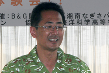 晴天に恵まれた2日間の体験会をしめくくる閉会式で、B&G江の島海洋クラブ代表・NPO法人セイラビリティ江の島代表の松本 冨士也 さんは、「ヨットは年齢に関係なく、誰でも楽しむことができます。自然の風を利用する優しいスポーツ“ヨット”に、また、チャレンジしてください!」と話しました。