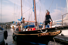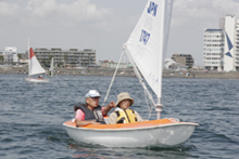 子どもから高齢者まで誰でも気軽に楽しめるアクセスディンギーに、スタッフと2人1組で乗船
