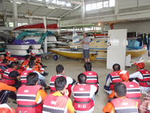 海上での研修は緊張します 研修内容は、画一的なものではなく、社会的変化に対応するため適宜改善し、“海洋などの自然環境”や“水辺の安全教育”、“インタープリテーション”など、研修の充実を図っています。