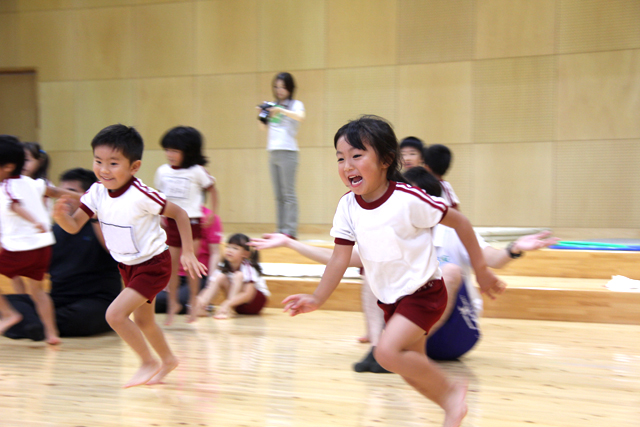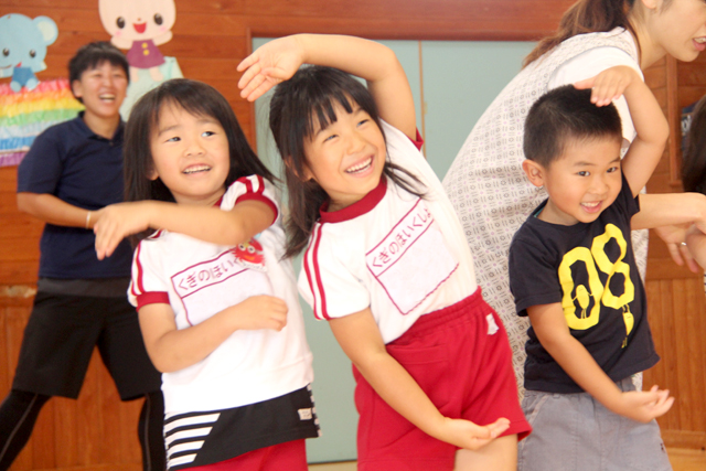 | 概要 | 熊本県南阿蘇村の幼児を対象に、村内3ヵ所の保育園で、音楽に合わせたリズム体操や柔軟、有酸素運動などを取り入れた運動プログラムを実施した。 県内は、地震に次いで、6月下旬から7月にかけて、避難指示が出るなどの豪雨に見舞われ、子供達が外で体を動かし遊ぶ機会がほとんどなかった。 そんな中、同村の藤岡教育長から「体を動かし、子供達のリフレッシュを図ってほしい」という要望が届き、同教室を実施する運びとなった。 当日は総勢91名の幼児が参加。熊本県内所在のB&G海洋センターに勤務するB&Gインストラクター7名(湯前町1名・玉名市1名・菊池市2名・長洲町2名・南関町1名)もサポートに駆けつけて事業を支援した。 |