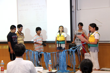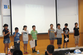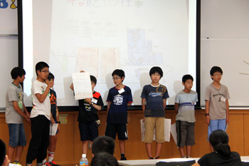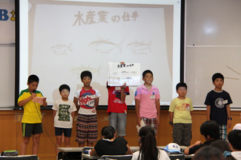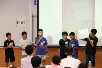 7月31日(金)に国立オリンピック記念青少年総合センターにおいて、7月27日(月)から7月30日(木)まで「東京湾海洋体験アカデミー2015」にて体験学習したことを発表する「学習発表会」が開催されました。6班が6つのテーマに分かれて、それぞれ子供達が見て、聞いて、感じたことを発表しました。