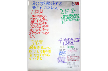 船の実験模型の費用や造船の加工手順等をクイズ形式で説明しました。造船の説明だけでなく、作業員の苦労話や造船所の合言葉「ご安全に」の紹介、発表者の感想を交えながら報告していました。