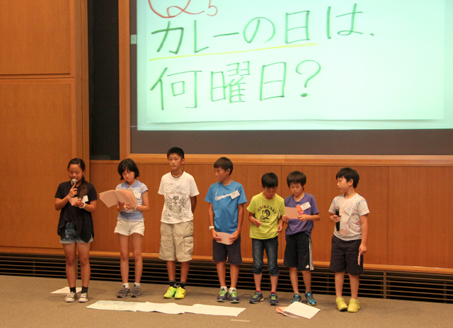 4班のメンバーは、海上自衛隊の基地で働く人々にスポットを当て、東日本大震災のときに津波で被災した大勢の人の命を救ったことなどを解説。また、毎週金曜日にはカレーを食べる伝統があることも紹介しました。