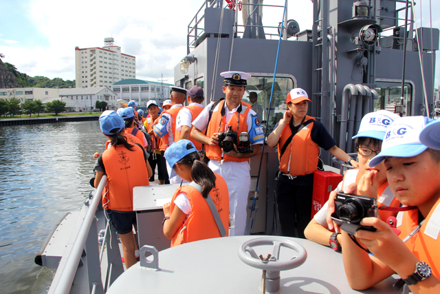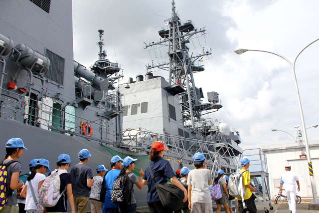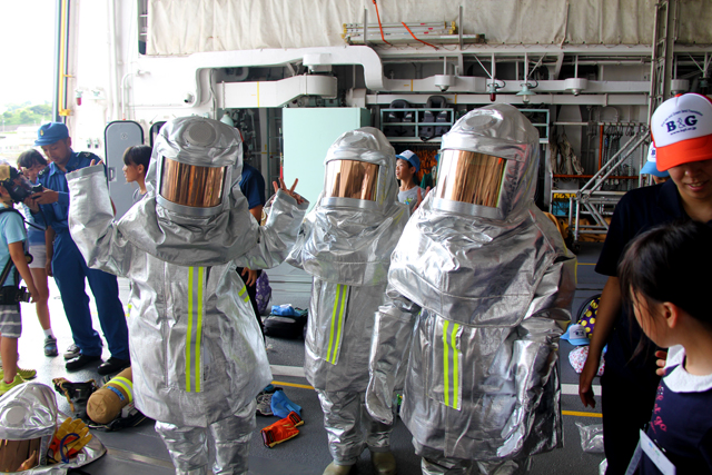 8月2日(火)午後、海上自衛隊 横須賀基地を訪問。海上自衛隊の仕事について説明を受けた後、護衛艦を見学したりタグボートに体験乗船したりしたほか、防火服などの特別装備も着用してみました。