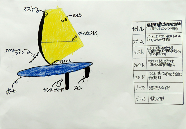 イラストを使いながらウインドサーフィンの艤装を解説しました