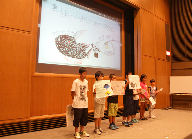 水産研究所で学んだたくさんのことを、マグロやホタテといった身近な話題を交えて上手に説明してくれました。3つの研究についても分かりやすく伝えてくれました。
