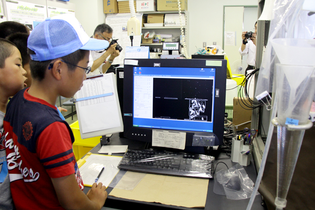 顕微鏡で捉えたプランクトンをパソコンの画面で観察。小さな生物も懸命に生きています