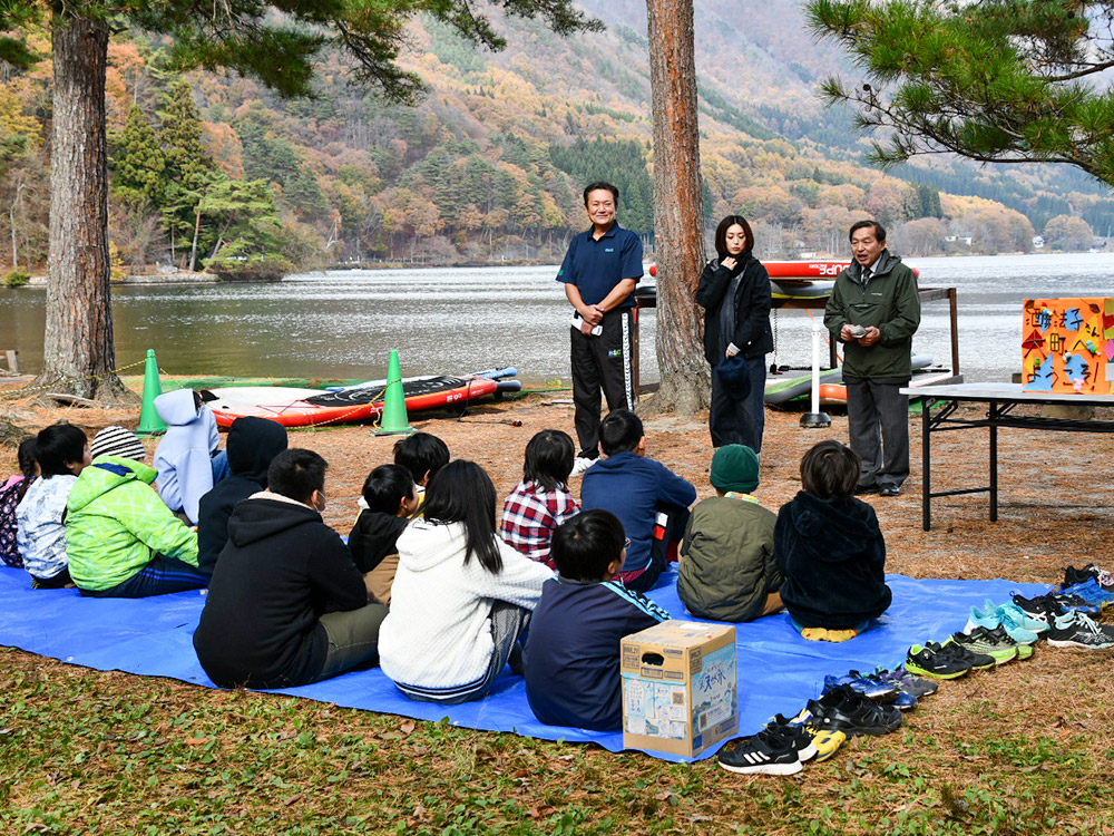 11月12日、晩秋の長野県大町市。例年、初冬を迎える時期ではあるが、今年はあたたかい日が続いており、四季としての秋を長く体感した気がする。ただ、この日はあいにくの曇りのち雨模様。気温も一気に下がり寒々とした日中となったが、楽しげな子どもたちの声が美しい湖のほとりで響き渡っていた。