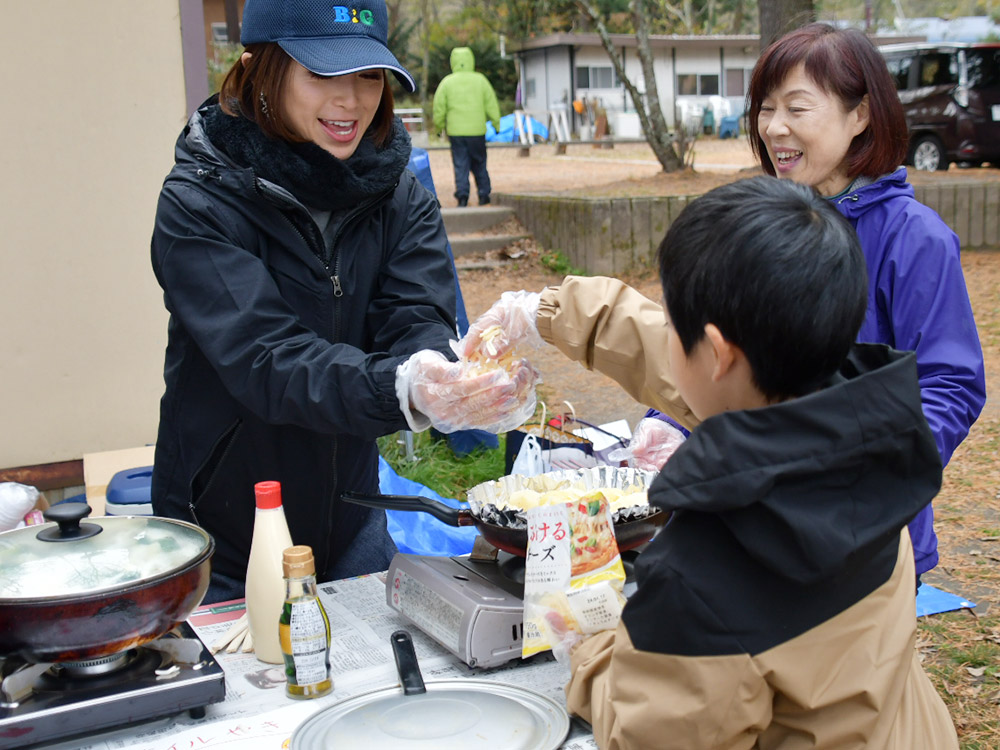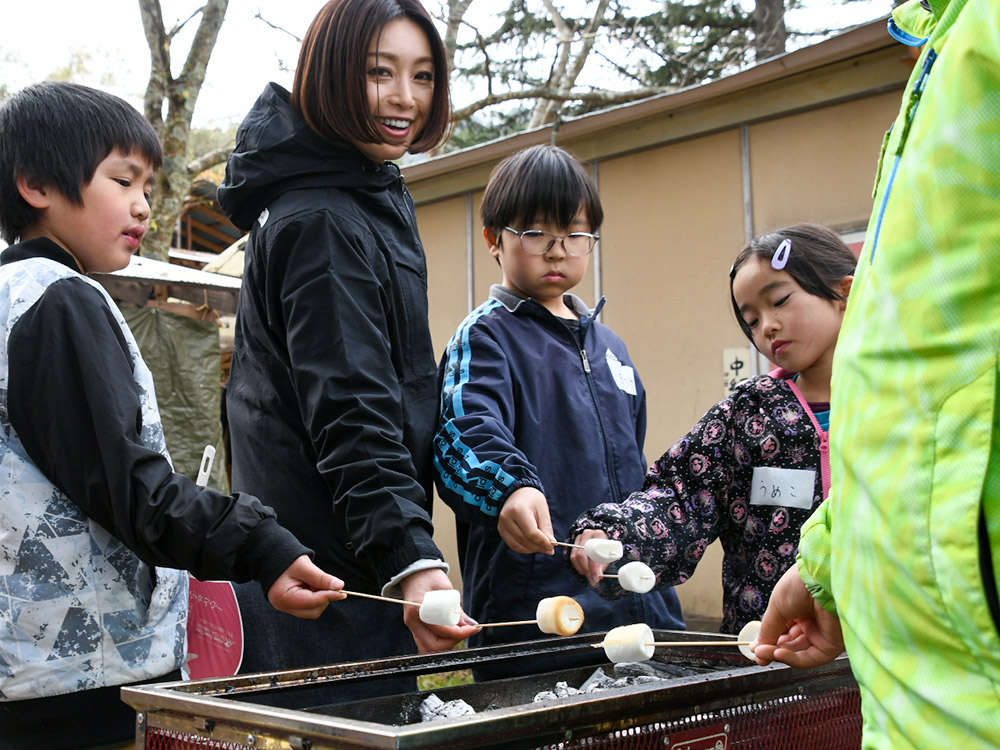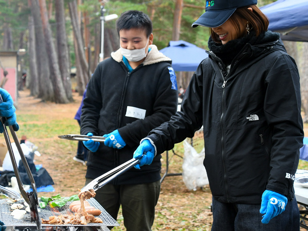 この日、子ども第三の居場所事業の一環として運営を行っている「b&gおおまち拠点(以下、本拠点)」主催のデイキャンプが、木崎湖キャンプ場にて開催された。今回は特別ゲストとして、子ども健全育成大使を務める酒井法子氏が駆け付けた。スタッフも含めた約30名の参加者は、この日を心待ちにしていた。