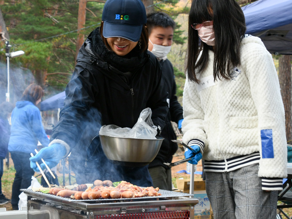 大自然の中でBBQ 大町市長も歓迎のあいさつ