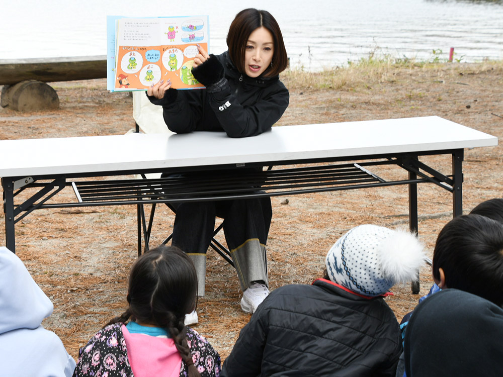 昼食後は、紙芝居「かっぱのふうちゃん」を酒井氏が朗読。夢中で話に聞き入る子どもたちと、時々クエスチョンを投げかけながら朗読を続ける酒井氏とのやりとりが印象的だった。