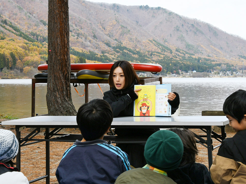 一緒にBBQや外遊びを楽しみ、雄大な山々をバックに紙芝居を朗読