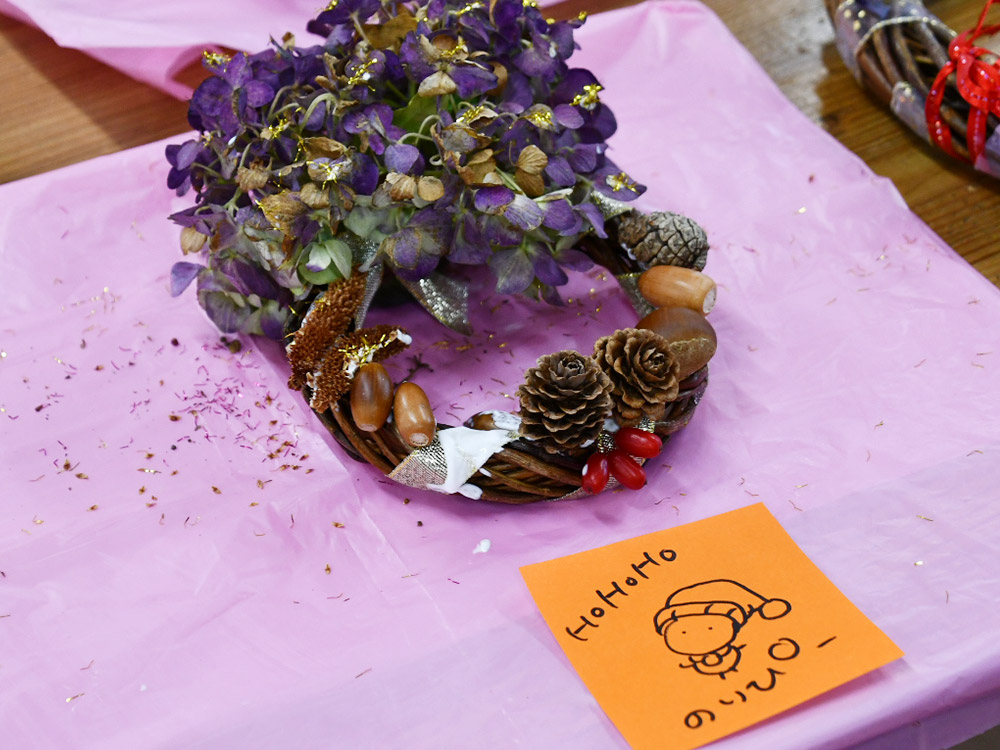 バランスを考えながら細かく飾り付ける子もいれば、リースを立体的に捉え大胆に飾りを配置する子もいる。だれ一人として似たような作品がなく、無限の可能性を秘めた子どもたちの才能に、ただただ脱帽した。