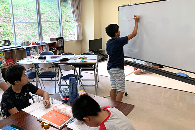 夏休みといえば、レジャーやお祭りなどいろいろなイベントが盛りだくさん。しかし、それは夏休み宿題をやってこそ。最終日に慌てて宿題をこなした経験がある方も多いと思います。1か月以上も休みがあり勉強せずにいると、1学期に学んだ内容を忘れてしまいます。由利のBG塾では、午前中は勉強の時間として設け、2名の先生がサポートに入り宿題をするのに加え、毎日1問、問題を出しみんなで考えて解く時間もあり、『考える力』を育てていました。