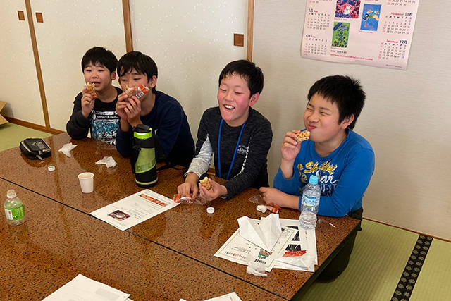 美味しそうにほおばる子どもたち。 -