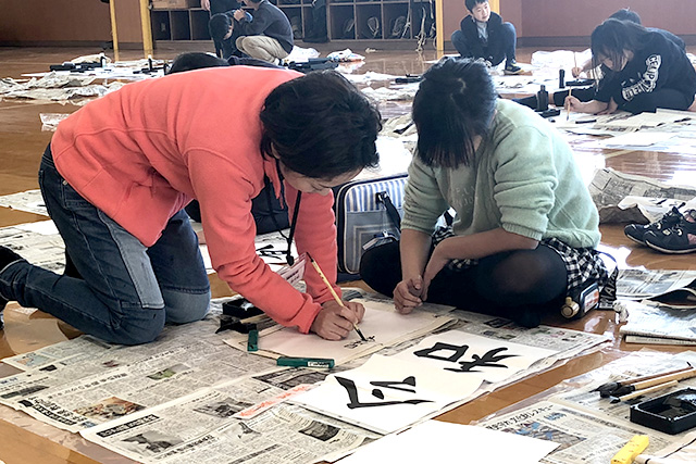 夏休みではなく、冬休みだからこそできるプログラムもあります。その一例が書道教室です。