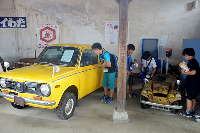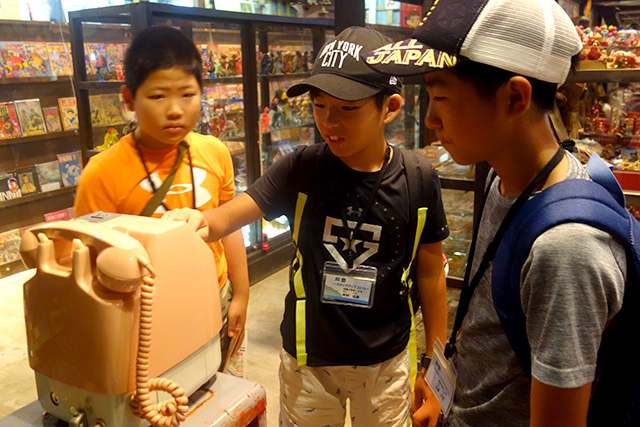 海洋センターが設置されている各市町村には、それぞれその土地で培われた魅力・歴史があります。しかし子どもたちが自分たちの住んでいる地域の良さを理解する機会があまりありません。そこで、豊後高田市真玉B&G海洋センターでは同市の魅力的な場所の一つである、「昭和の町」を散策しました。「昭和の町」は、豊後高田市の中心商店街の昔懐かしい街並みや生活の様子がそのまま残されていて、まるでタイムスリップしたかのようです!子どもたちが自分たちの住む地域の歴史を感じられる身近な場所といえます。レトロな車やダイヤル電話に子どもたちは興味津々でした。