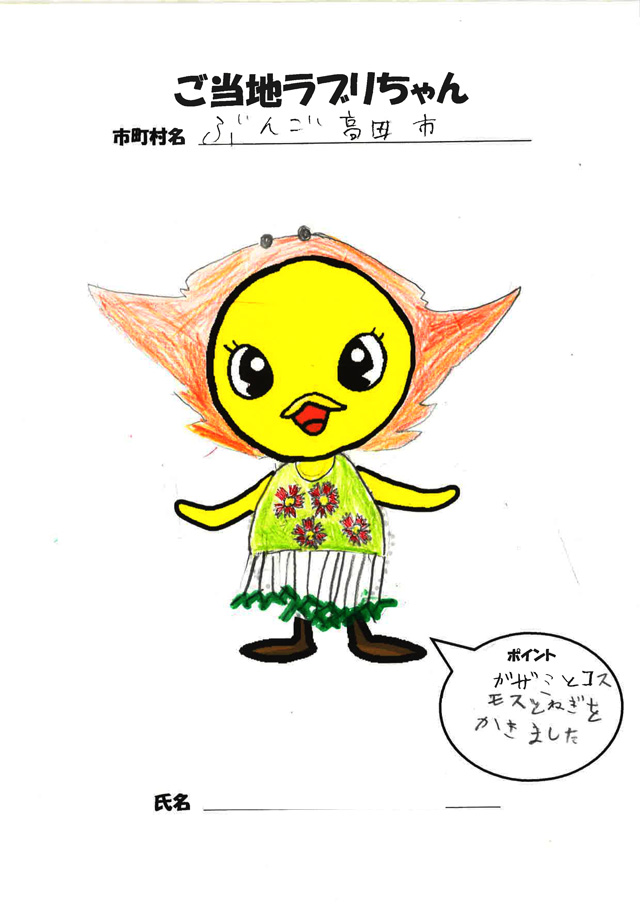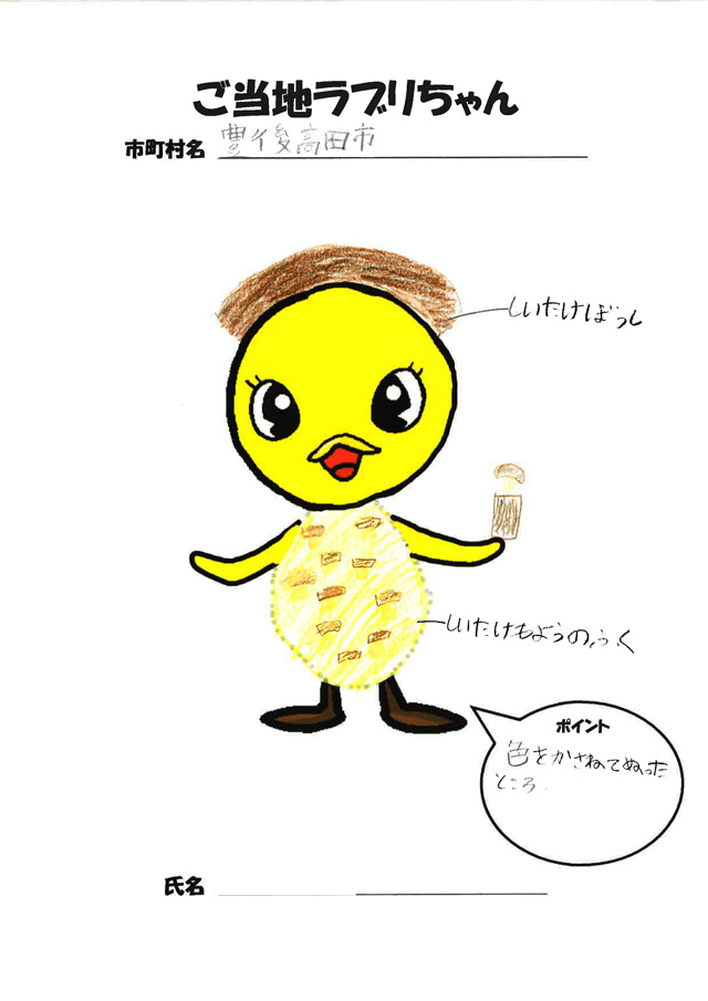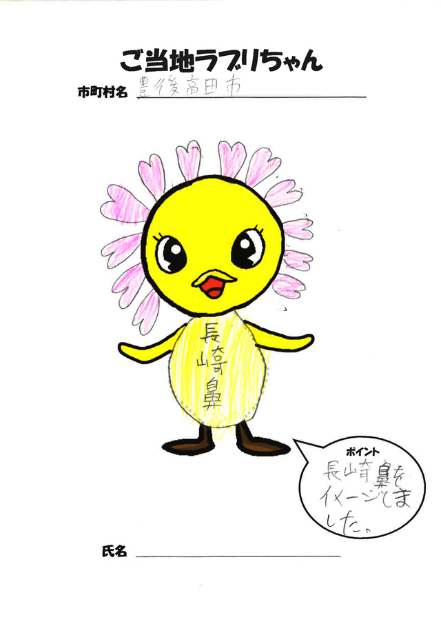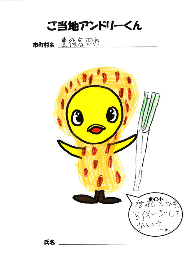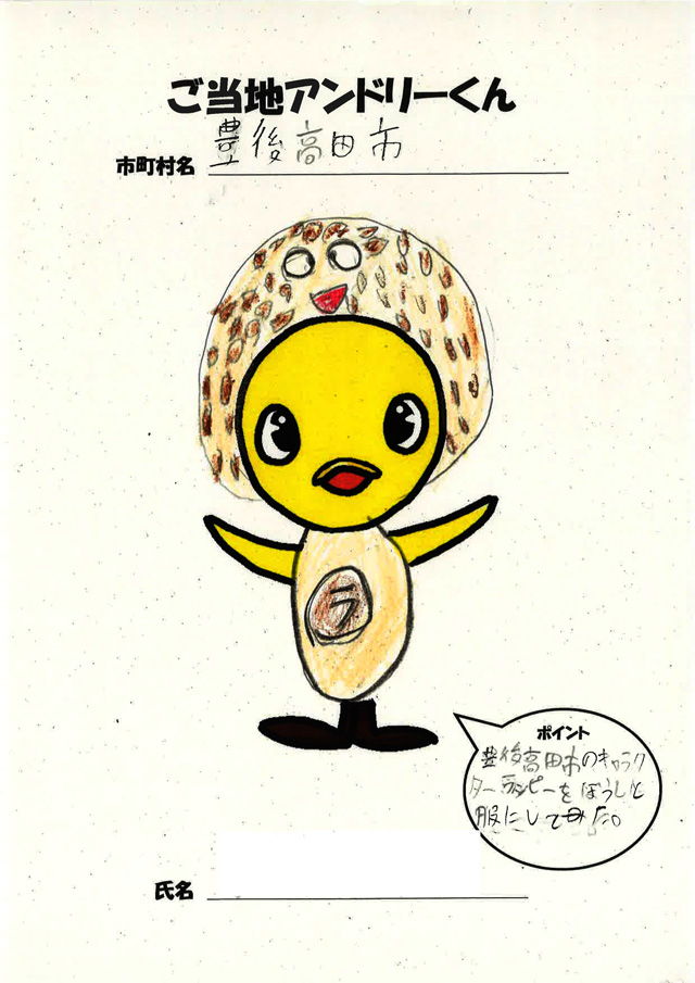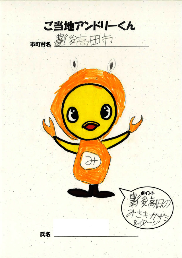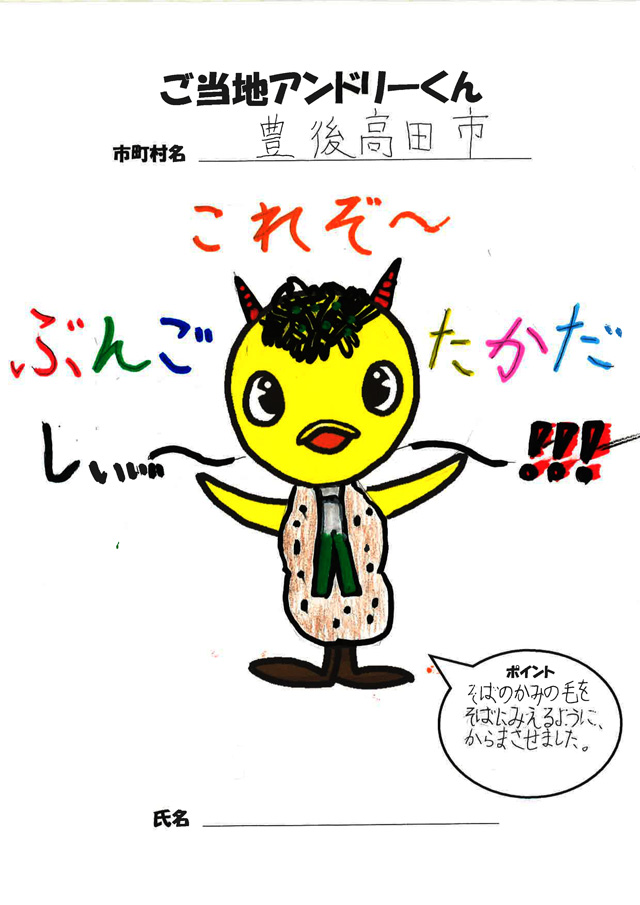 地域の魅力と歴史を学んだあとは、海洋センターのマスコットキャラクターである、アンドリー君とラブリちゃんを豊後高田市の魅力を盛り込んだ姿に変身させる「ご当地アンドリーくん&ラブリちゃん」の時間です。子どもたちは「昭和の町」で見たことを活かしつつ、個性的な「アンドリーくん&ラブリちゃん」をデザイン。素材は同じであっても出来上がりは全く異なっており、子ども達の自由な発想力に驚かされました。