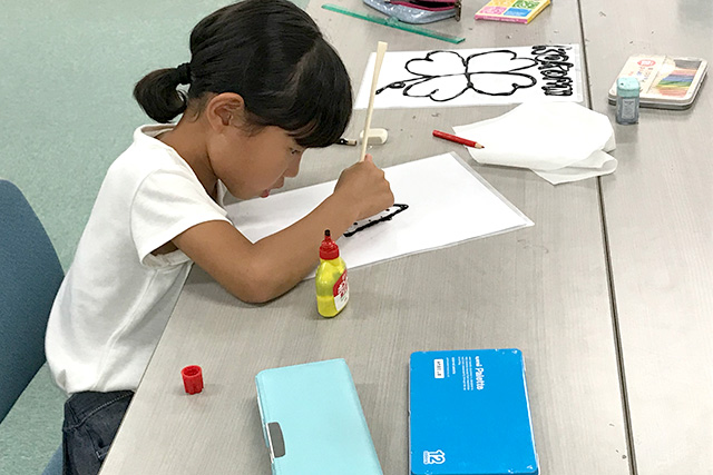 ステンドグラスづくりに取り組む子供