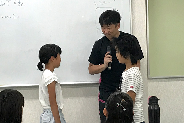 BG塾に参加した子どもたちも普段は元気いっぱいですが、大勢の人がいる場で注目を浴びると途端に声が小さくなり、どこか自信なさげになってしまう子もいます。そんなシャイな子どもたちに自信をもって話してほしいという思いのもと、高島のBG塾では話し方講座を行いました。