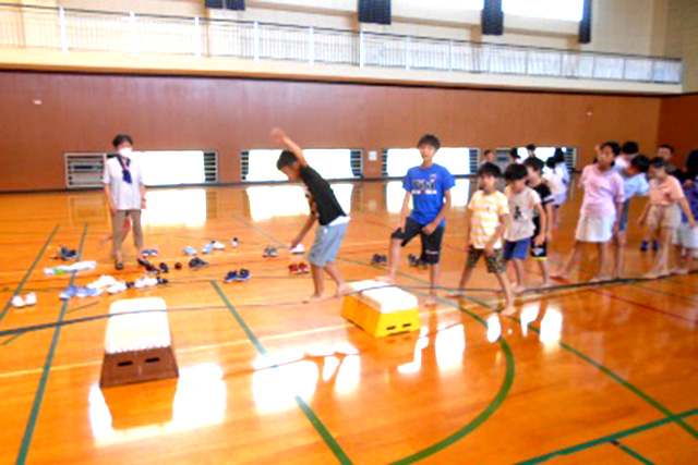 由利本荘市由利B&G海洋センター(秋田県)では夏休みの5日間、市内の小学生18人が参加し「BG塾」を開催しました。夏休みの宿題や課題に取り組むとともに、水中バスケットボールやフライングディスク、防災教室、ガーデニングなど、様々な体験活動を行い、「勉強と運動」のメリハリをつけて取り組みました。