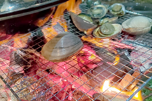 みんなで獲った貝を焼きます