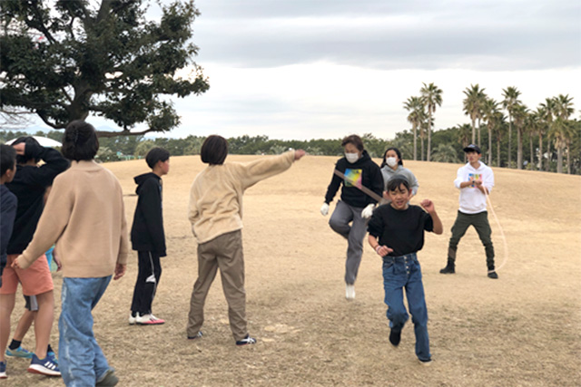 学習の時間は、学校の宿題に取り組む以外に、漢字の練習やドリルなどを中心に、苦手科目を克服できる内容で実施。体験活動は、しめ縄や勾玉づくりなど工作のほか、缶蹴りや大縄跳びなど外遊びを取り入れながら実施しました。