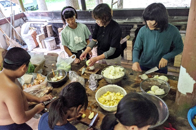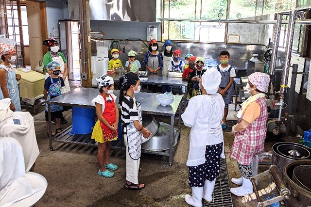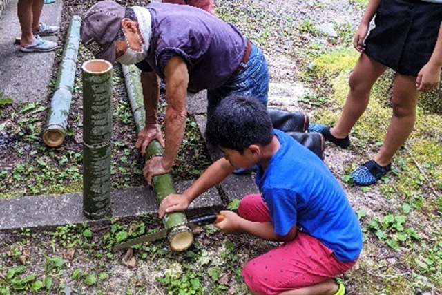 - 佐治の魅力を存分に感じてもらいたいとの思いで、さまざまな体験プログラムを企画しました。おやつ作りや魚のさばき方、竹工作を通じて、普段の生活をあらためて考えなおすきっかけにしてほしいと思います。