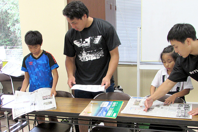 【内容】 B&G海洋センター避難所開設マニュアルを活用し、新聞紙でスリッパを作成しました。 【講師・サポーター】 センター職員、大学生 |