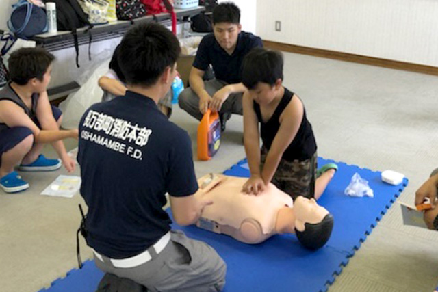 【内容】 心肺蘇生とAEDを用いた救命救急体験を実施しました。 【講師・サポーター】 防災担当の職員 |