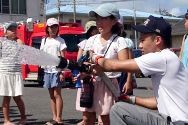 【内容】 消防職員の方が講師となり、救命講習や放水訓練をおこないました。参加者は真剣に職員の話を聞き、楽しそうに取り組んでいました。 【講師・サポーター】 笠利消防分署 |