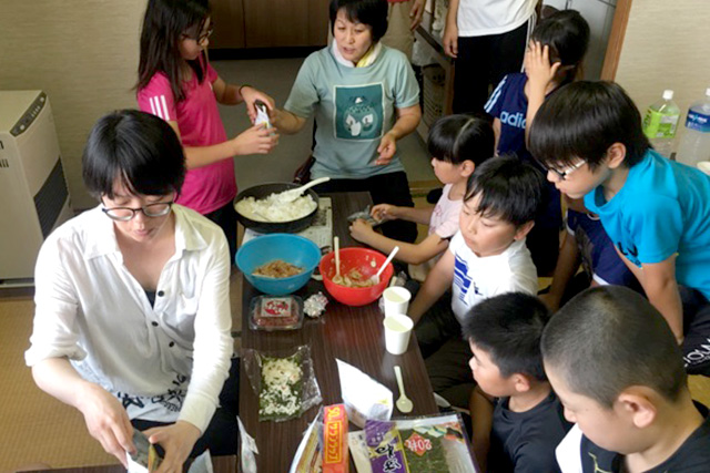【内容】 町内の多目的施設にて、おにぎりづくりを実施しました。ご飯を土鍋で炊くのがポイント! 【講師・サポーター】 学校教員 |